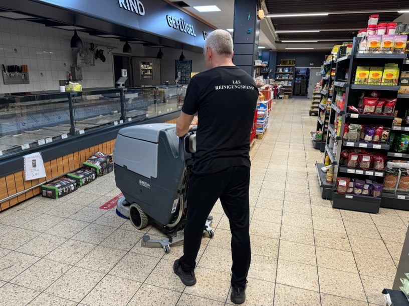 Boden- und Oberflächenreinigung, Entleerung von Papierkörben und Müllbehältern, Reinigung von Glas, Kassen, Kühltheken und Kühlsystemen,