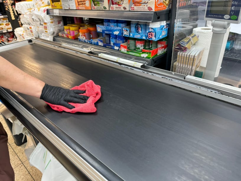 Boden- und Oberflächenreinigung, Entleerung von Papierkörben und Müllbehältern, Reinigung von Glas, Kassen, Kühltheken und Kühlsystemen,